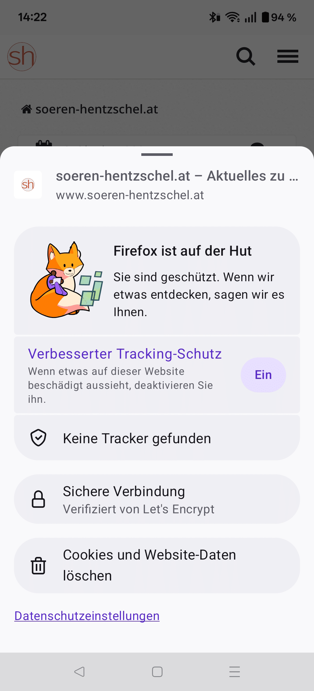 Das Panel mit Informationen zur Verbindungssicherheit und blockierten Trackern, welches nach Tippen des Schild-Symbols in der Adressleiste erscheint, wurde komplett neu gestaltet.