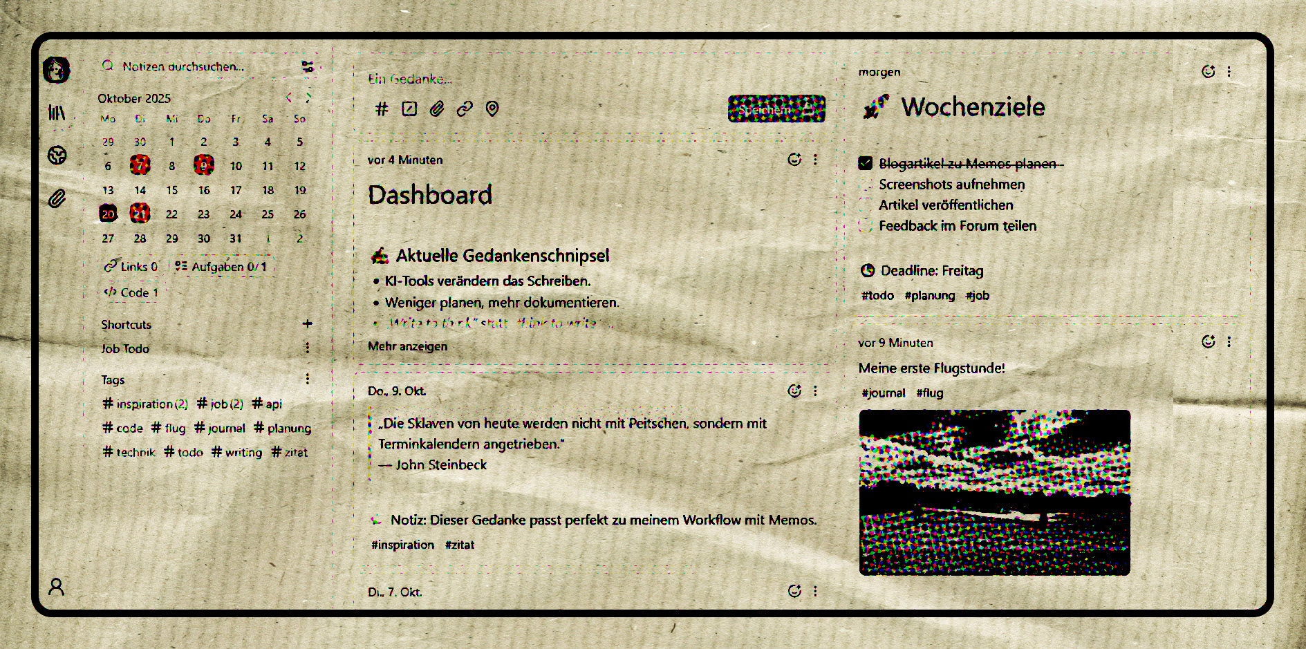 Memos ist ein kleiner und flinker Notizen-Server. Gedankenblitze, Journal-Einträge, Listen usw. usw. In 30 Sekunden via Docker auf einem Raspberry Pi oder NAS installiert bewährt sich Memos im Alltag.